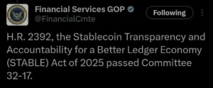 Chairman French Hill of Arkansas emphasized the need for “innovation with guardrails,” viewing stablecoins as a way to modernize cross-border payments and reduce reliance on traditional banking. The bill aligns closely with a version passed by the Senate Banking Committee, and lawmakers hope to resolve differences soon.