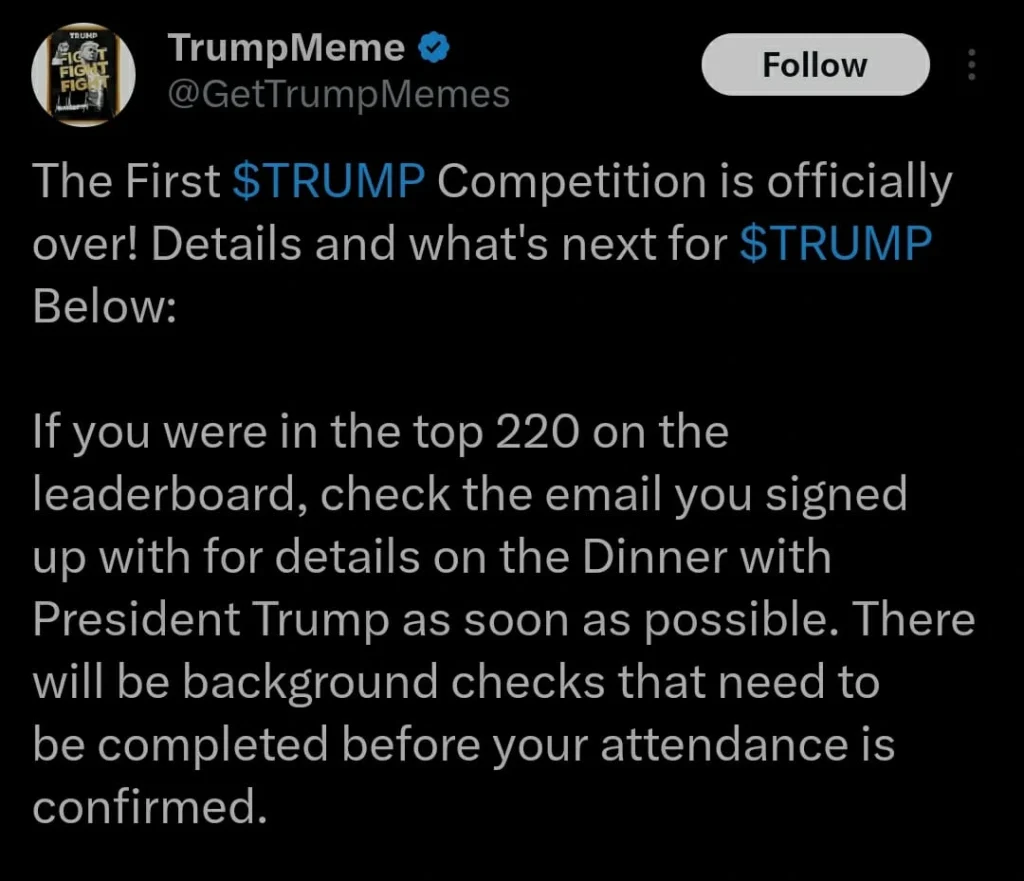 TRUMP Meme Coin Gala Contest Ends